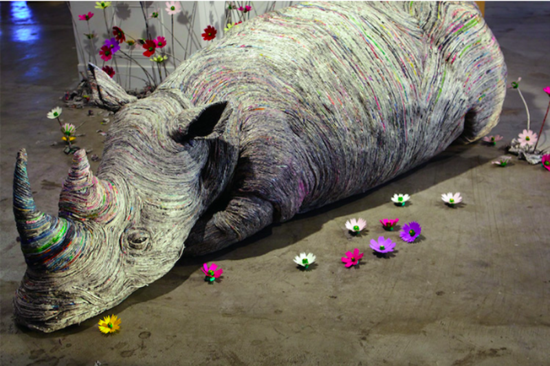 To create each creature she twists and turns her wet newspaper, Hitotsuyama skill-fully binds the pieces together. By varying the thickness and outline of the paper, you can accurately reproduce the look you want, from a living monkey to a resting rhinoceros. She also uses colour printing on newspaper to create impressive gradations. The process is entirely manual and requires a huge amount of paper.