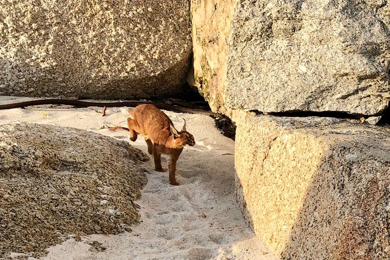 Imagine enjoying the sunset on Clifton Beach in sunny South Africa with your girlfriend when you spot a caracal taking a walk along the beach, possibly also admiring the sunset.