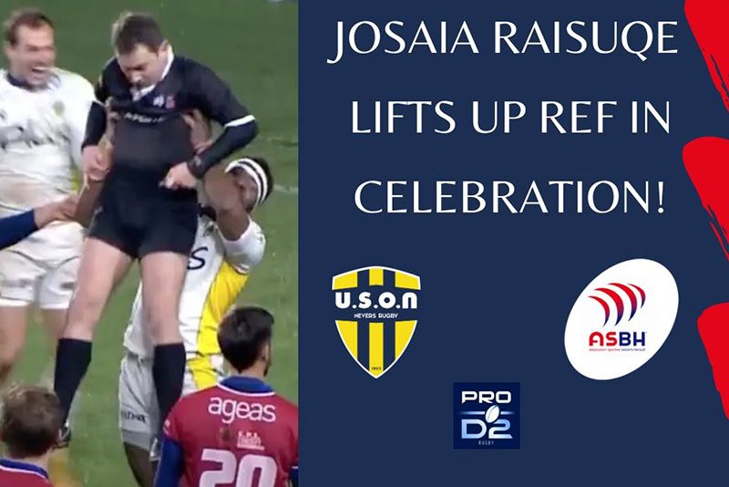 FRENCH RUGBY LEAGUE PLAYER GETS BANNED FOR LIFTING REF WHILE CELEBRATING