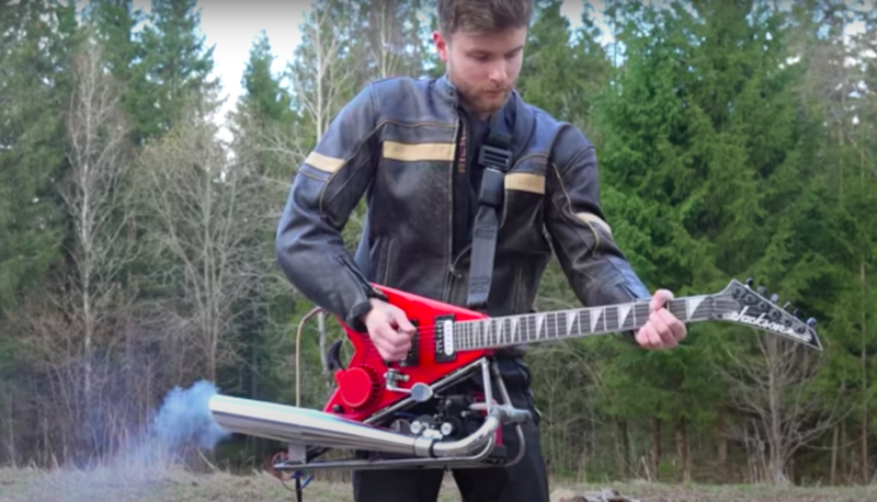 Swedish musician Matthias Krantz, who gets the best out of his instruments, has attempted to create a Flying V-style electric guitar with a gas engine. He experimented with several engines but eventually settled on a four-stroke engine that suited his needs. He then fiddled around mounting the motor to the guitar a bit, but once he figured it out, he started turning it around until he ran out of gas.