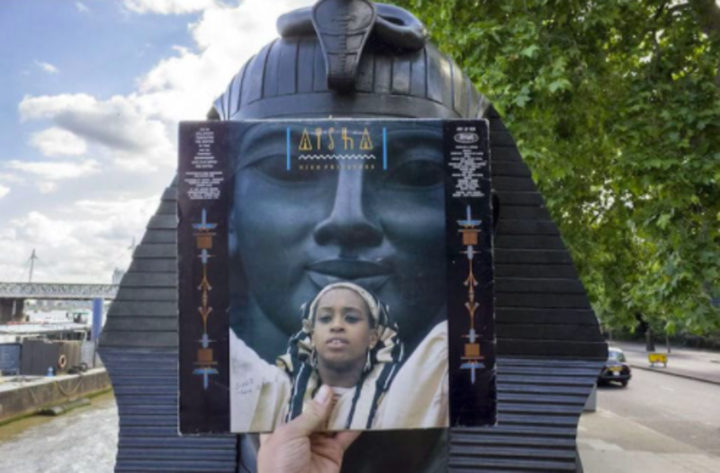 The photographer explained, “The idea first came to me when I bought the Brixton Cat LP by Joe's All Stars (Trojan Records, 1969). I live in Brixton and took the record down to the market where the cover photo was shot, holding it up and rephotographing it at arms length, matching up the LP to the background.”