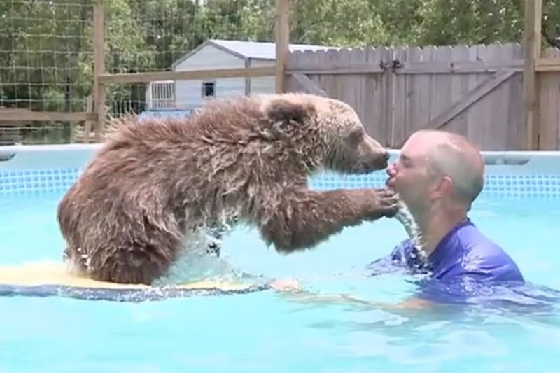 VIDEO: CUTE BABY BROWN BEAR LOVES TO SURF WITH HIS TRAINER!Cute baby Brown Bear loves to surf with his trainer! |