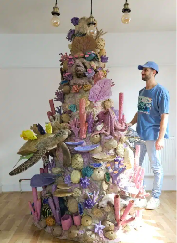 Artist Creates Amazingly Colourful 8 Foot Tall Coral Reef From Old Cardboard