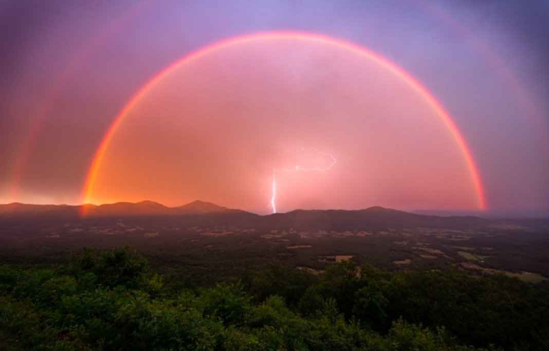 Photographer Captures Incredible Moment Of a Double Rainbow With a Lighting Bolt In The Centre