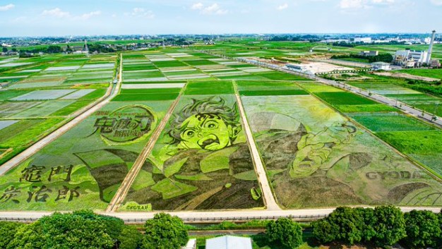 A Town in Japan Well Known For its Rice Paddy Art dedicates This Year’s Piece to a Popular Anime Show Demon Hunter