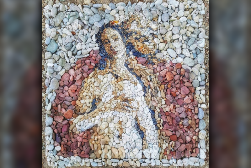 Artist Recreates Famous Paintings On The Beach By Using Colourful Pebbles
