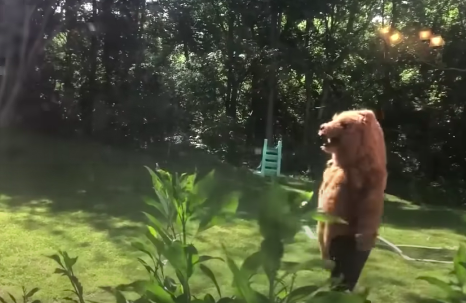 Man Scares Black Bear Away By Wearing a Bear Costume Himself