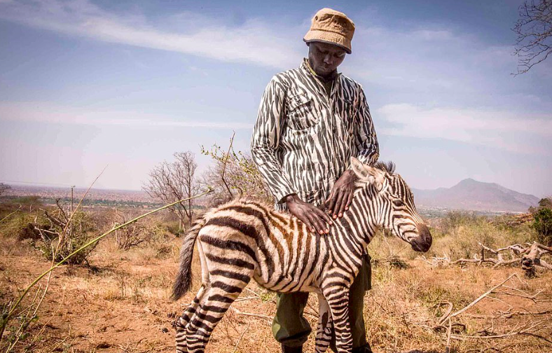 Orphaned Baby Zebra Cared For By Animal Conservationists Wearing Special Jackets