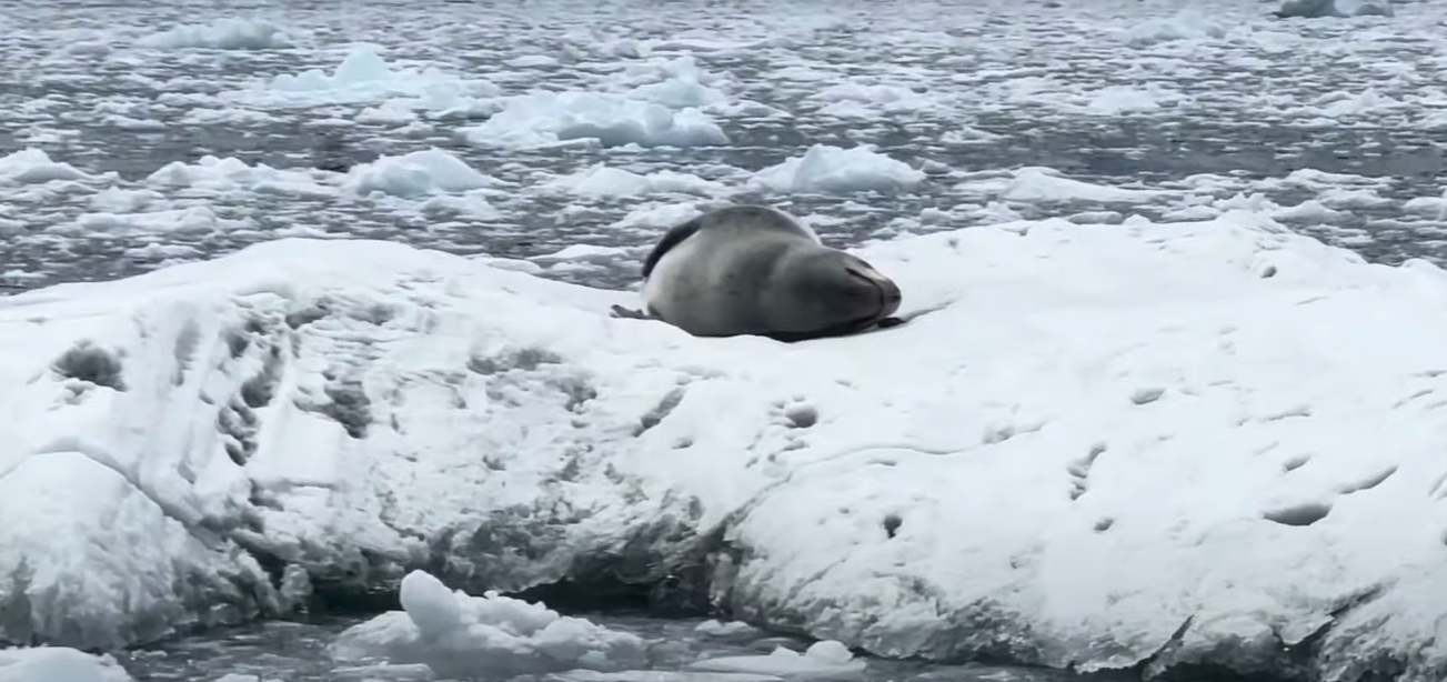 Adorable Rare Sight Of a Leopard Seal Singing On An Iceberg