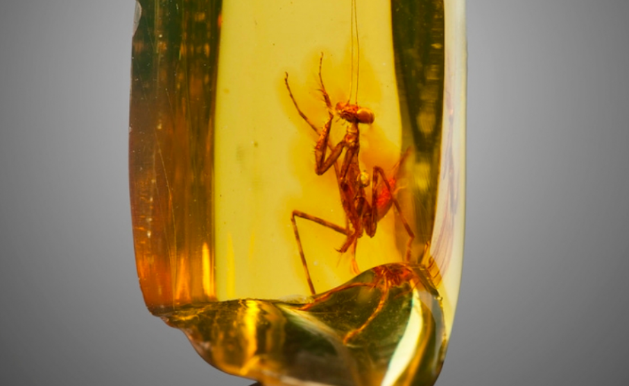 Praying Mantis Perfectly Reserved For 30-Million-Years In a Piece Of Amber