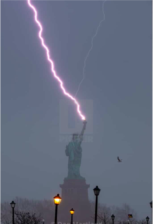 Incredible Moment When Lightning Struck The Statue Of Liberty Captured By Photographer